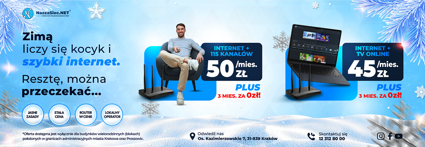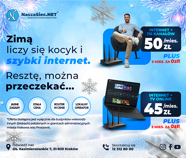 NaszaSiec.NET Kraków to dostawca usług telekomunikacyjnych, działający na lokalnym rynku od 2001 roku.