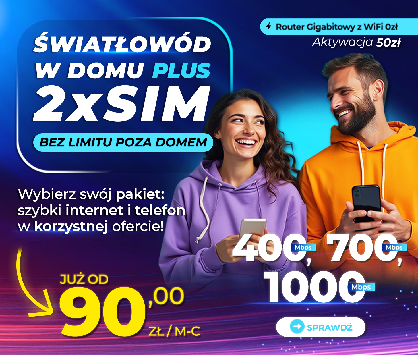 Wybierz światłowód, łącz usługi w korzystne pakiety i zacznij z nami oszczędzać.