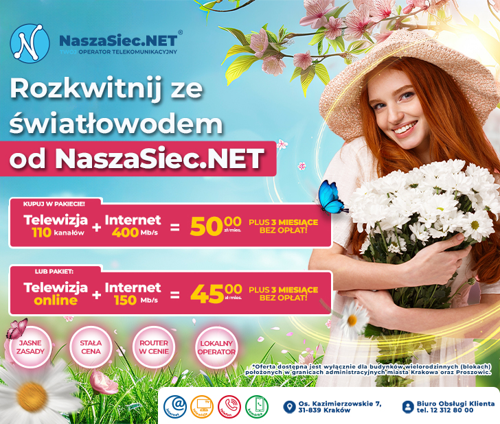 NaszaSiec.NET Kraków to dostawca usług telekomunikacyjnych, działający na lokalnym rynku od 2001 roku.