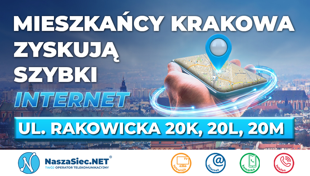 Światłowód GPON już dostępny przy ul. Rakowickiej 20K, 20L, 20M w Krakowie | NaszaSiec.NET